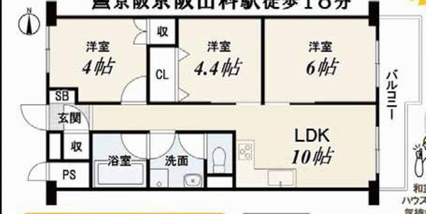 | 交通 | 地下鉄東西線 東野駅 3分 | 専有面積 | 51.06u | バルコニー面積 | 6.99u |