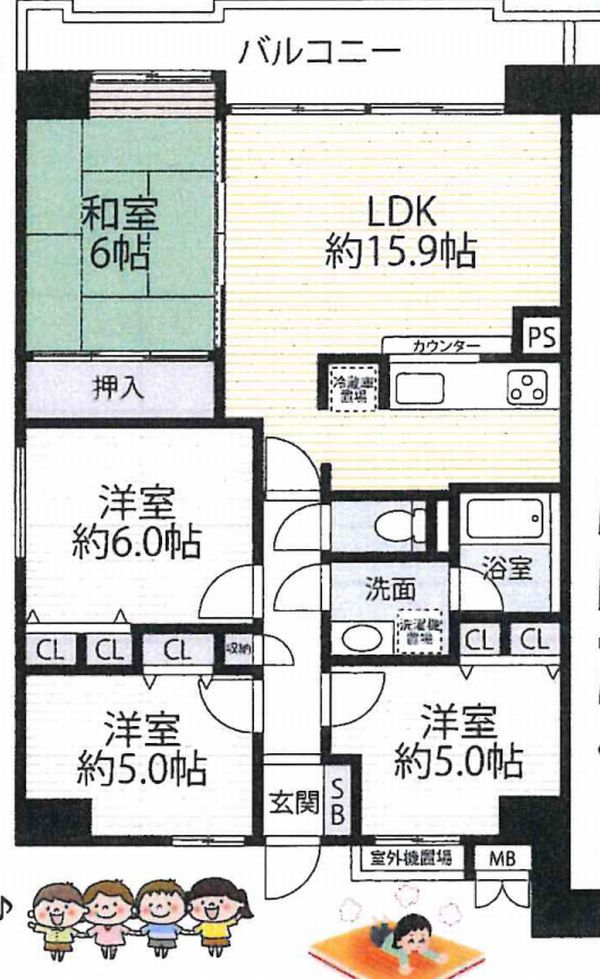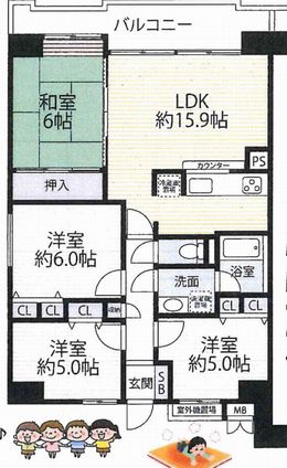 | 交通 | 近鉄京都線 伏見駅 4分 | 専有面積 | 81.20u | バルコニー面積 | 10.47u |